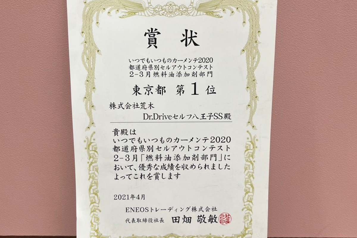 - 2020年【2月~3月】 燃料添加剤部門 東京都第1位