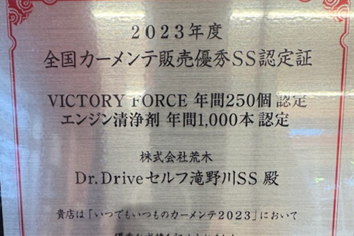 - 2023年度 全国カーメンテ販売優秀SS認定受賞