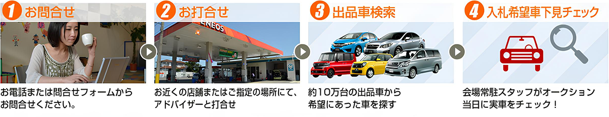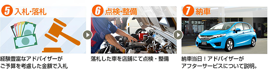 通常は見ることのできない出品詳細情報までも、事前に全てお見せしますので、安心して車選びをしていただけます。